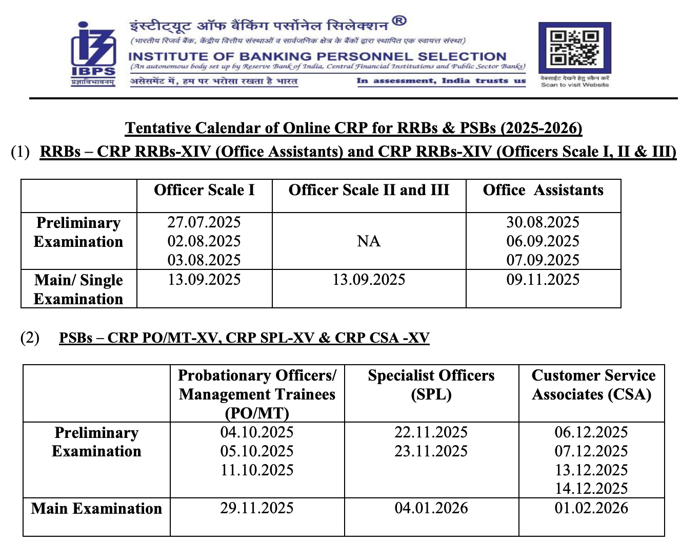 PSBs – CRP CLERK-XV Exam Dates 2025